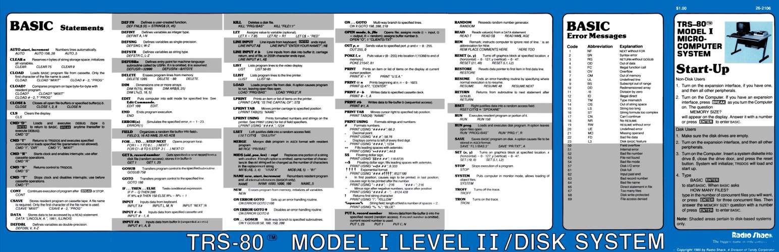 Although the various Level II ROMs have been disassembled and commented, the Level 1 ROM had not been … until now. To see a commented (as best I could figure out; the floating point routines are very hard to follow) Model I Level 1 ROM disassembly, visit the Model I Level 1 ROM Page.