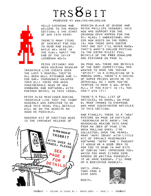 Dusty has released the March 2021 issue of the TRS8Bit newsletter. Here’s what he had to say: