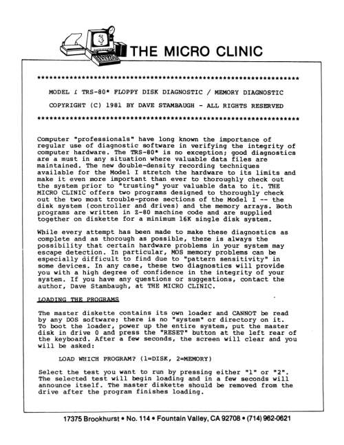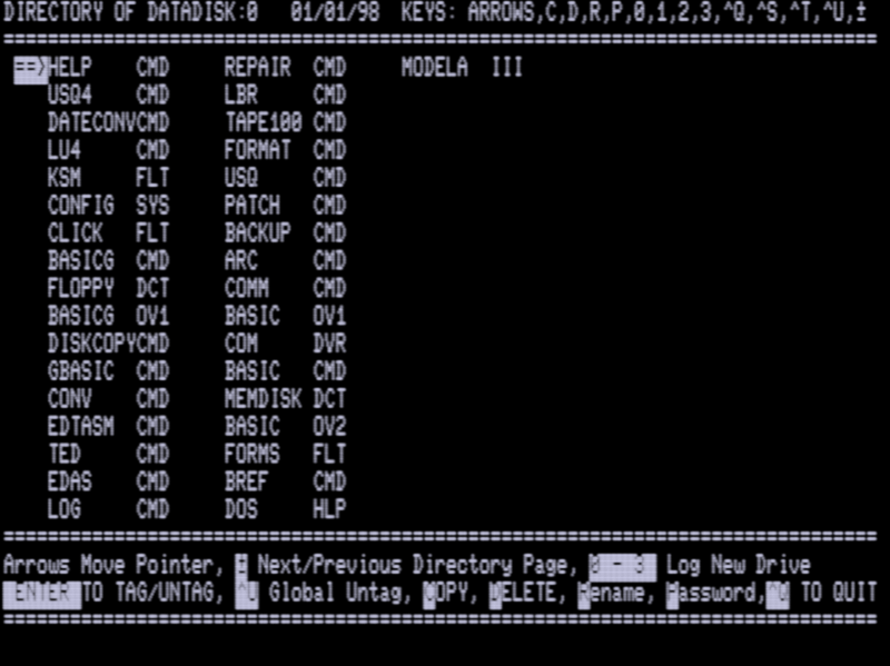In a feat I find to be quite novel and impressive, Jurgen Bussert has developed a program which will read data from a cassette (or WAV) and write a Model bootable disk. This will allow people with no boot disk, but who have an expansion interface, disk drive, and cassette cable, to create a boot disk! His package includes NEWDOS/80 v2.0, TRSDOS v2.3, LDOS, and MultiDOS v1.6S