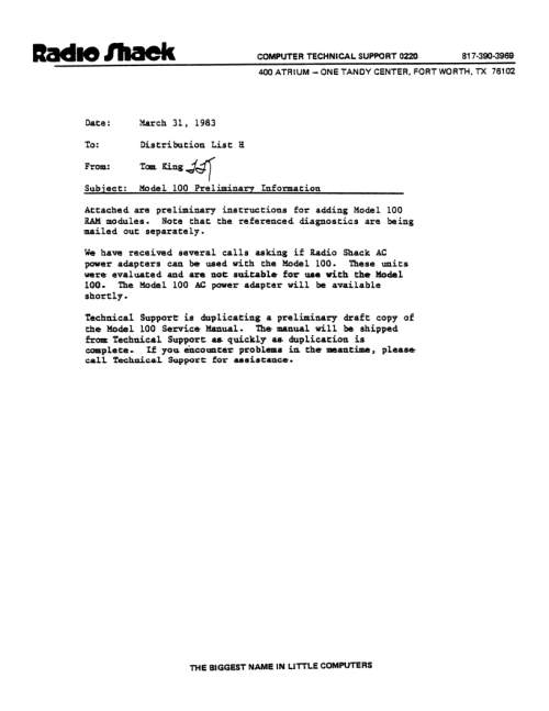 - Pete Centinski, Joe Rounceville, and Al Schemmer have been added to the TRS-80 Repair-people page.